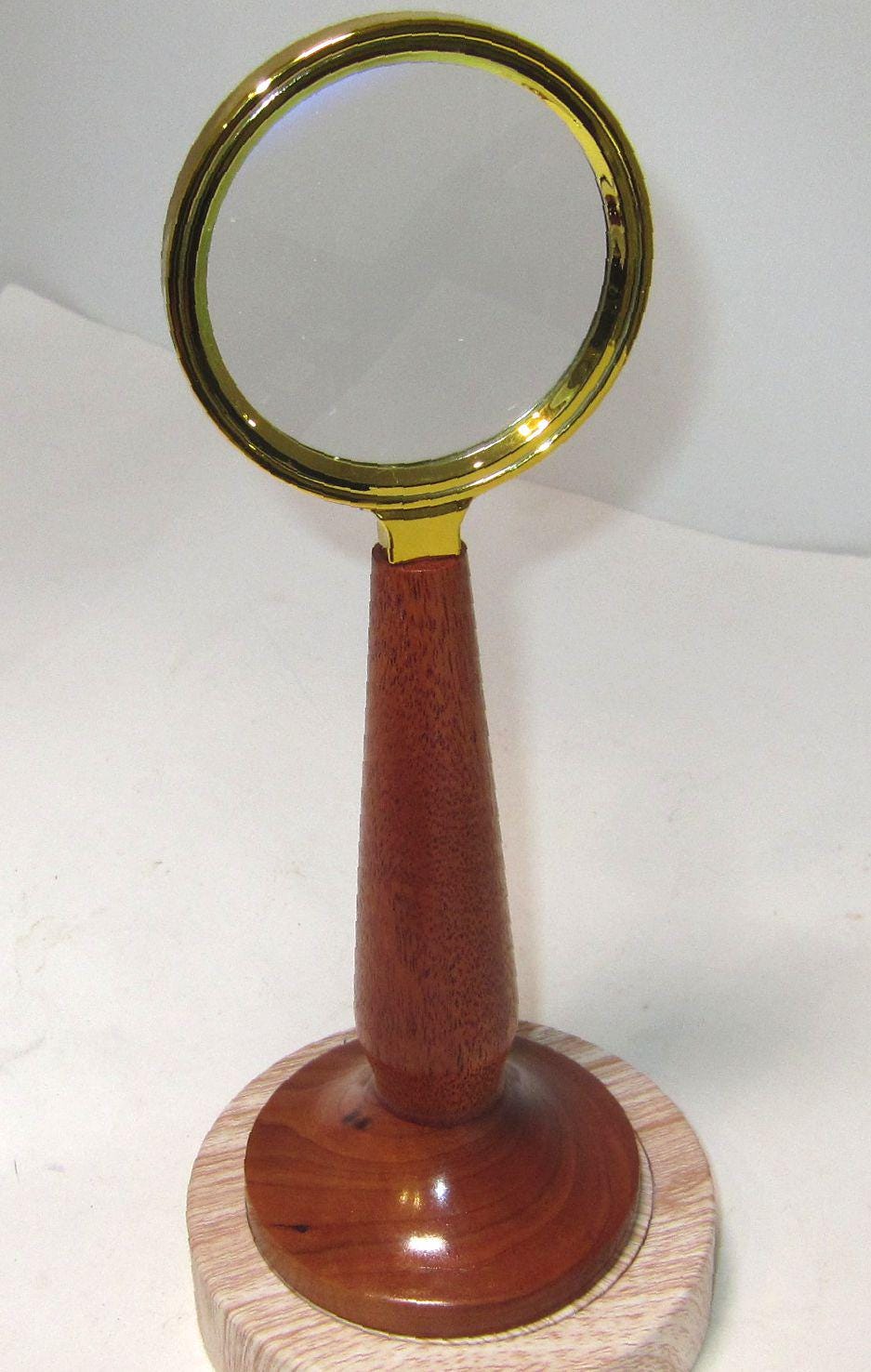 I custom make these standing magnifying glasses in my shop. These magnifying glasses come in very handy for all kinds of things you need a better look at around the home and studio. They’re stylish and functional
