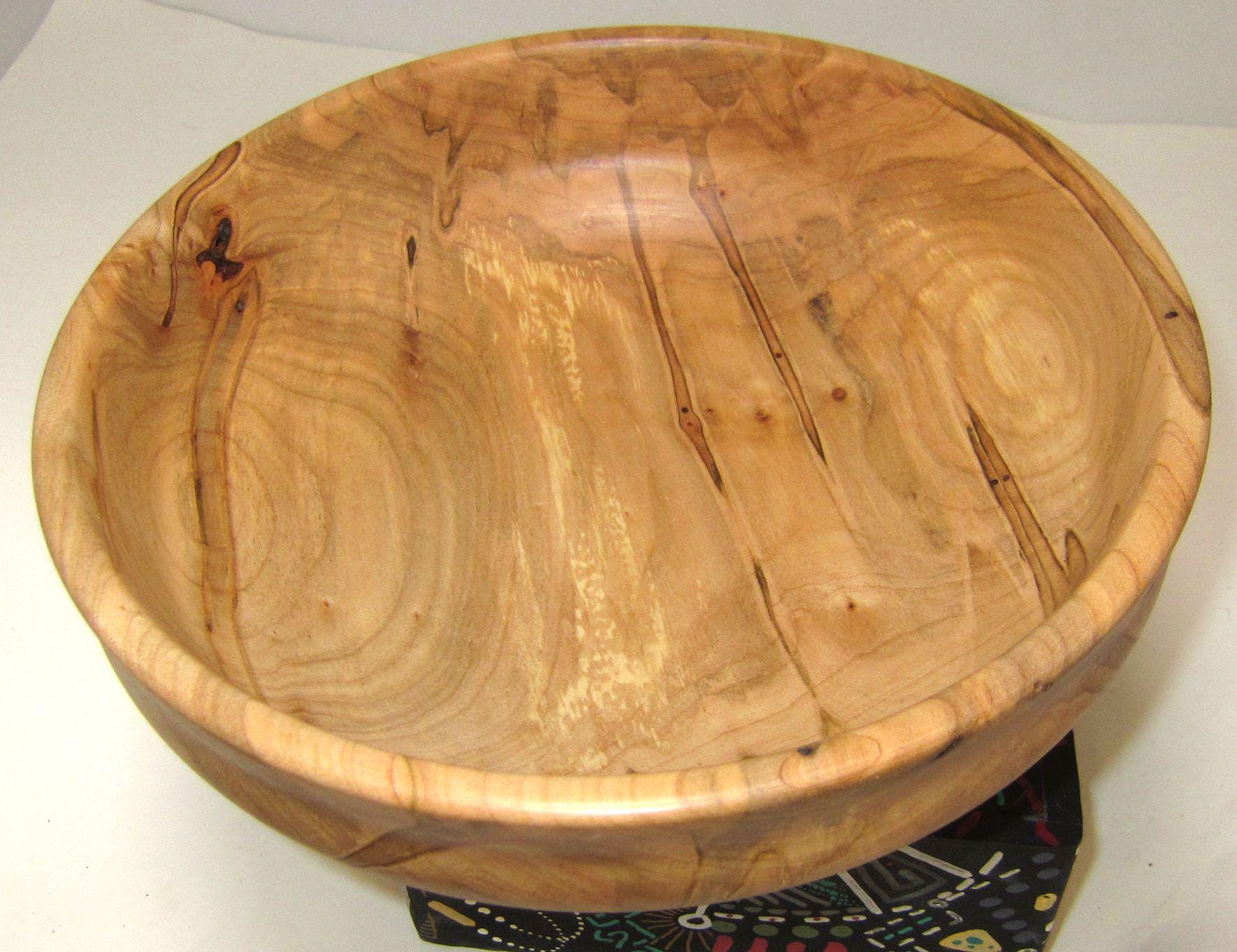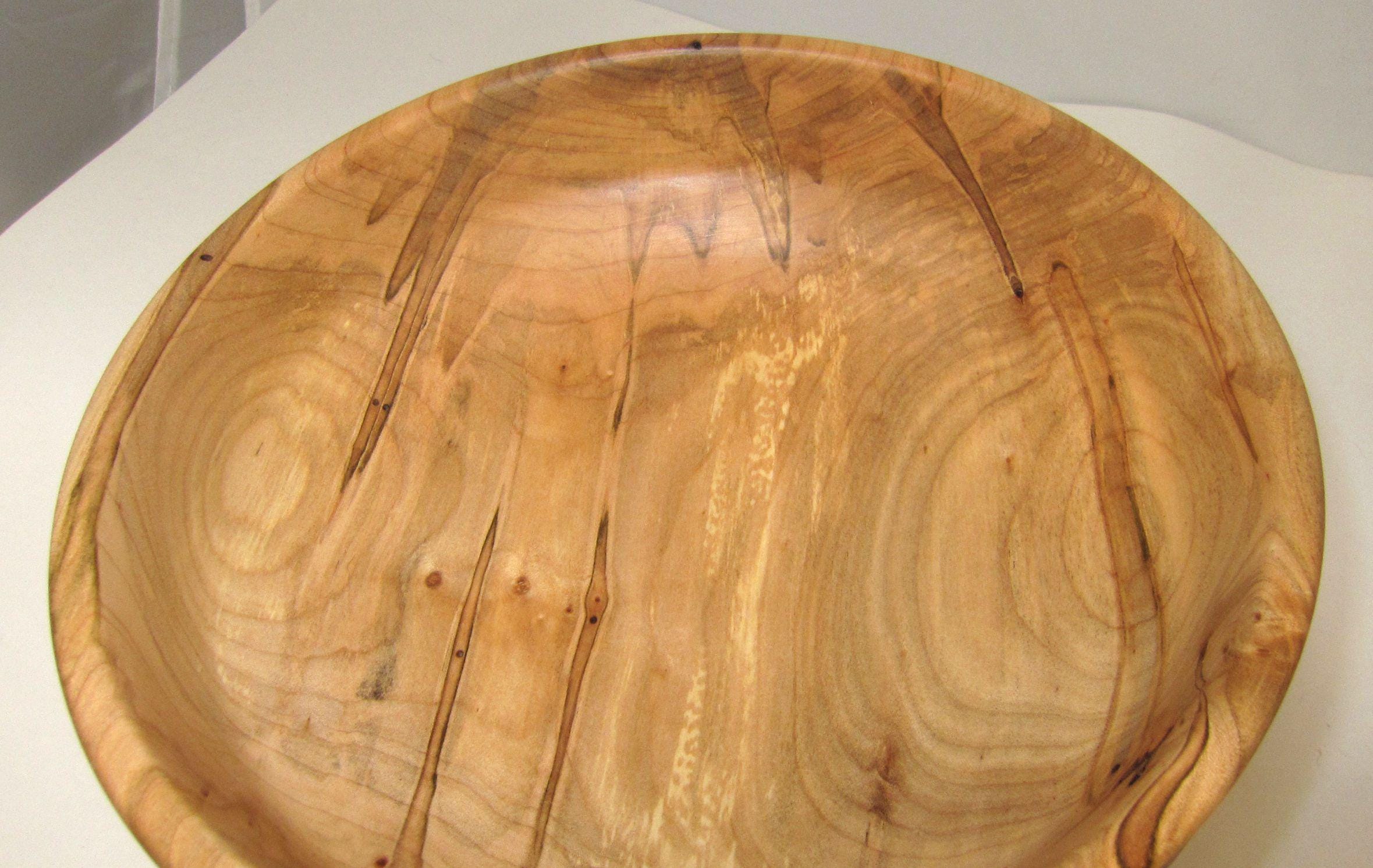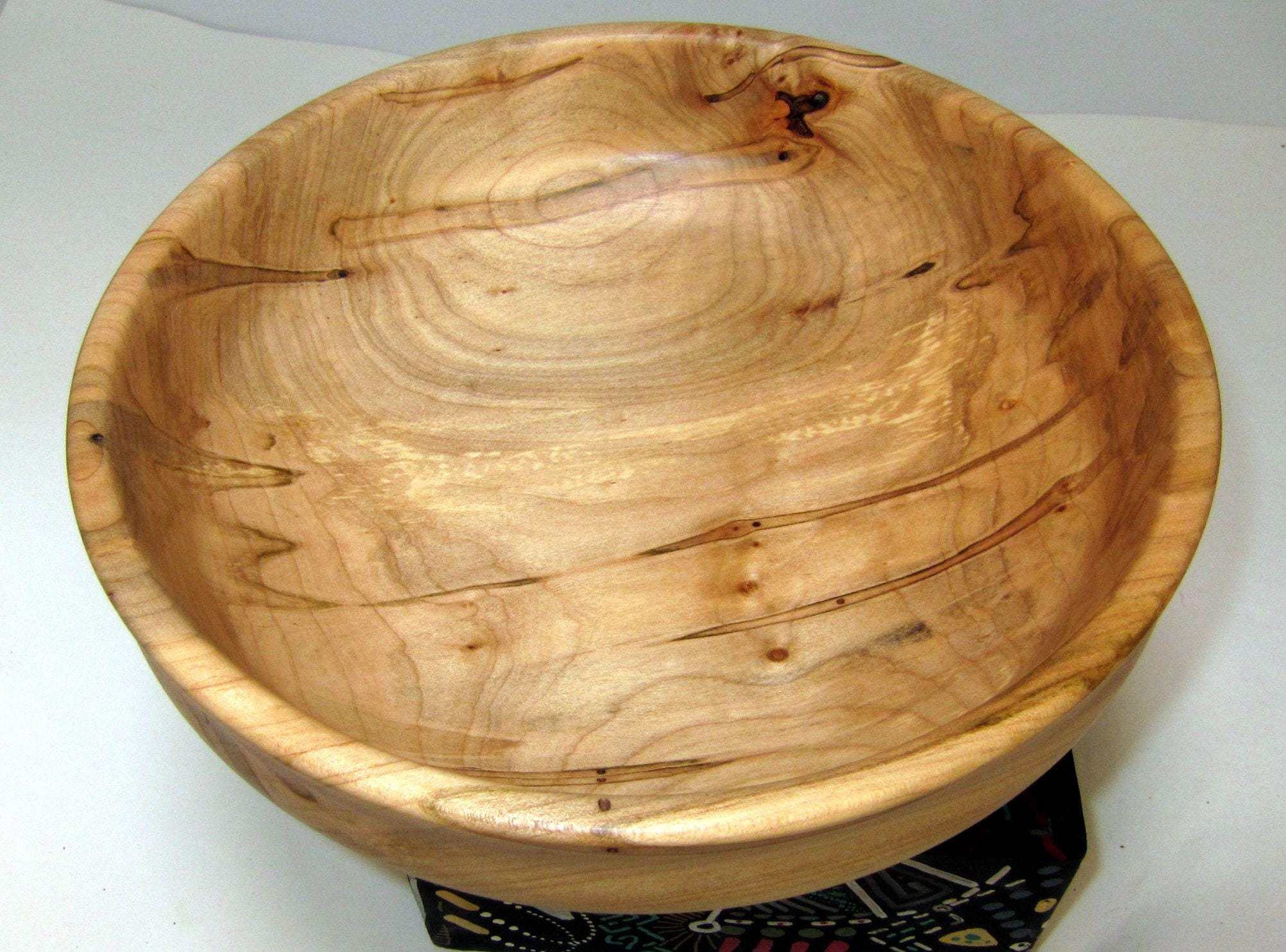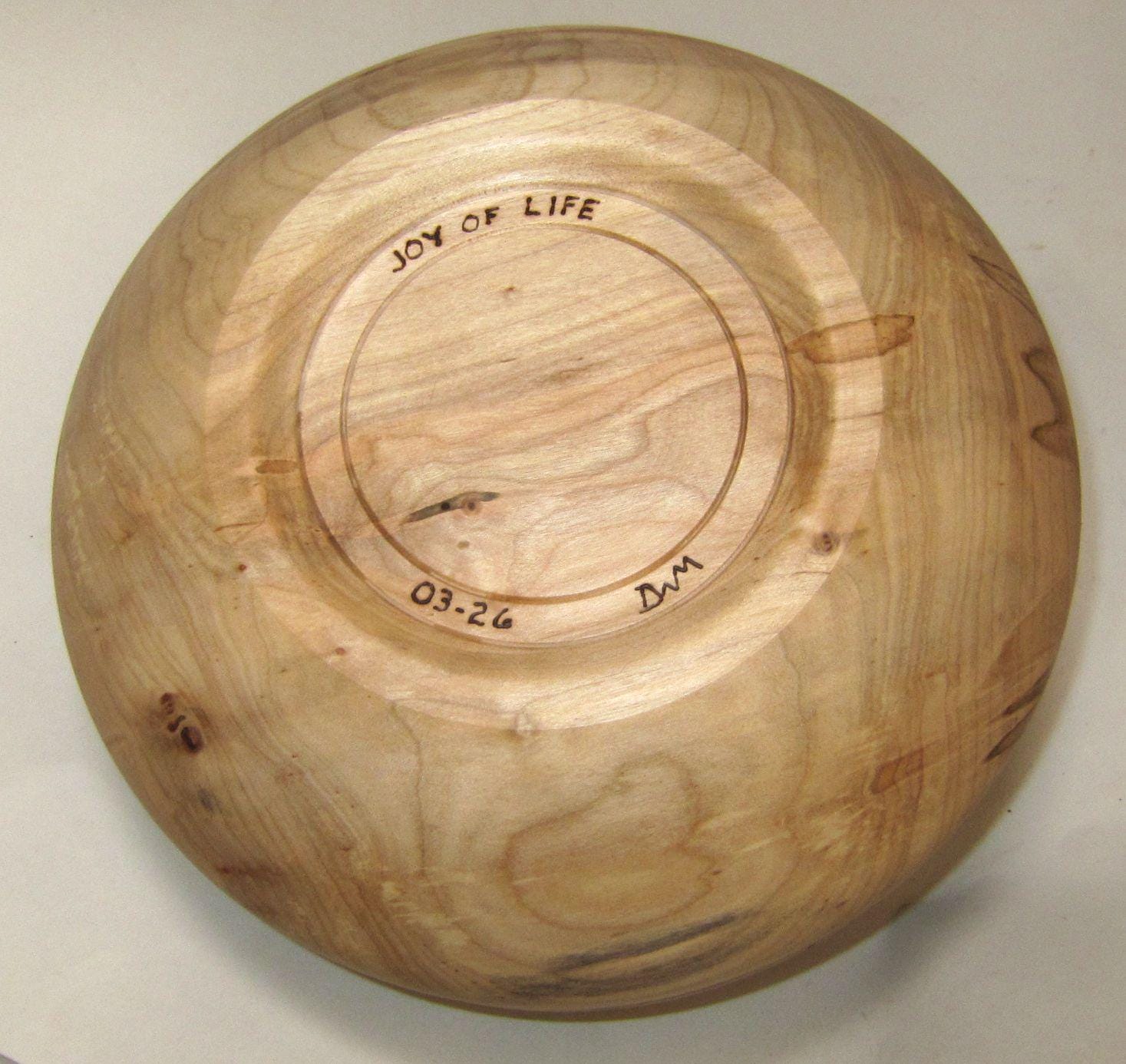 This bowl is made of Ambrosia Maple and measures about 8 ¾ inches in diameter and is about 2 ¾ inches high. The grain structure and staining patterns are all natural. It has a semi-gloss finish. I’ll let the photos and video speak for themselves.
