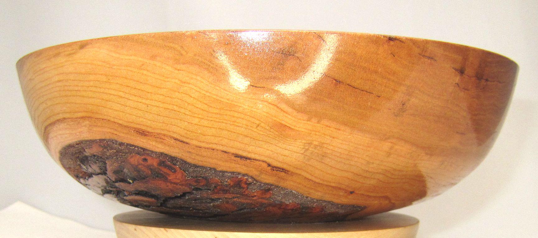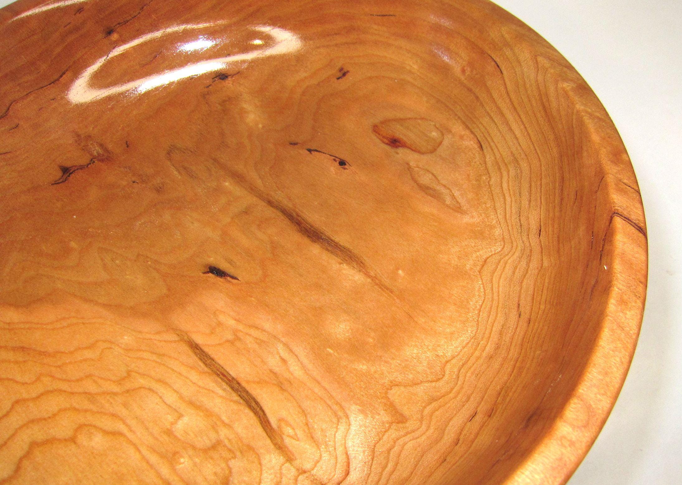 This bowl is made of Cherry and measures about 8 ¾ inches in diameter and is about 2 ½ inches high. The grain structure and color are all natural. It has a gloss finish. I’ll let the photos and video speak for themselves.